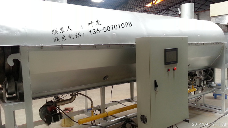 2, the use of gas infrared bottom heating drying method, through infrared heating at the bottom of the dryer, rapid heating of the drum, so that the drum quickly heated, dryer outlet temperature is low, high thermal efficiency;